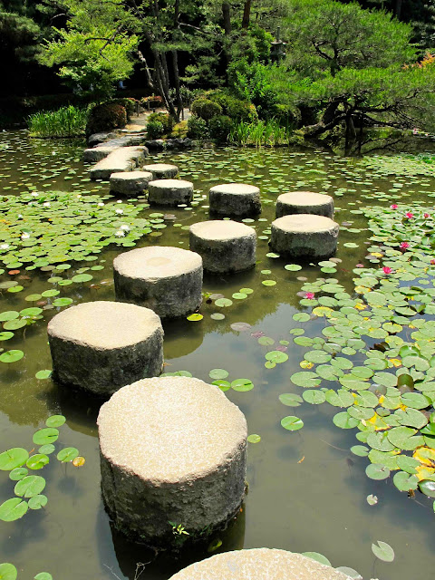 Yesterday I went on a marathon walk around Kyoto, a city full of shrines and their gardens. Unlike nearly every other city in Japan, Kyoto was fortunate not to be firebombed to ashes by the U.S. during WW2 (they don't teach us that in school). The Shinto Heian Shrine is relatively young, built in 1895 to commemorate the 1100th year since the founding of Kyoto. It has numerous buildings all painted vermilion, a color that was apparently first derived from the application of clay (see more about vermilion below). It also has a garden so beautiful you walk around in a daze of blissful revery---it was designed by Ogawa Jihei (1860-1933), one of Japan's great gardeners.